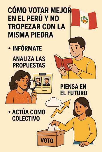 Finalmente, votar mejor significa pensar como colectivo. No se trata únicamente de lo que me conviene a mí, sino de lo que le conviene al Perú entero. Un país no se construye con individualismo, sino con visión de comunidad. Si todos votamos con esa lógica, estaremos sembrando la semilla de un futuro más justo, estable y próspero. Si no lo hacemos, seguiremos tropezando con la misma piedra y repitiendo la historia de frustración y desencanto. El voto responsable es como un espejo: refleja el país que queremos, y depende de cada uno de nosotros decidir si lo seguimos llenando de decepción o si empezamos a darle un nuevo rostro.