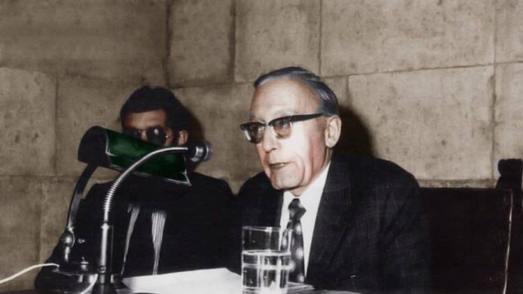 El ilustre profesor Luis Fernández Fuster, durante una de sus memorables intervenciones en los cursos de divulgación turística celebrados en Canarias en los años sesenta-setenta del pasado ciclo, organizados por el Centro de Estudios Turísticos de Canarias.