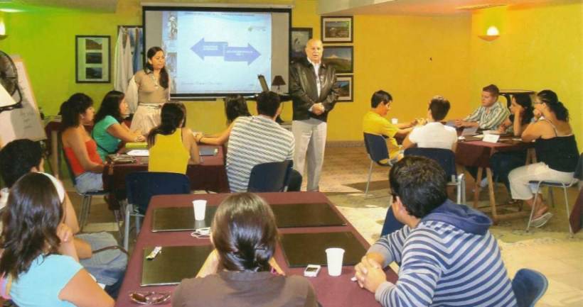 La capacitación, es fundamental para el buen desarrollo de la planificación del turismo. En la sede del Instituto Superior de Estudios Turísticos Internacionales, Villa de la Orotava, Tenerife, un grupo de profesionales americanos, intervienen en la clase personalizada magistral del profesor Antonio Pastor Abreu, durante la maestría sobre la Calidad Turística-Ambiental y Promoción de La Paz, promovida por el citado instituto y la Universidad para la Paz, de las Naciones Unidas.